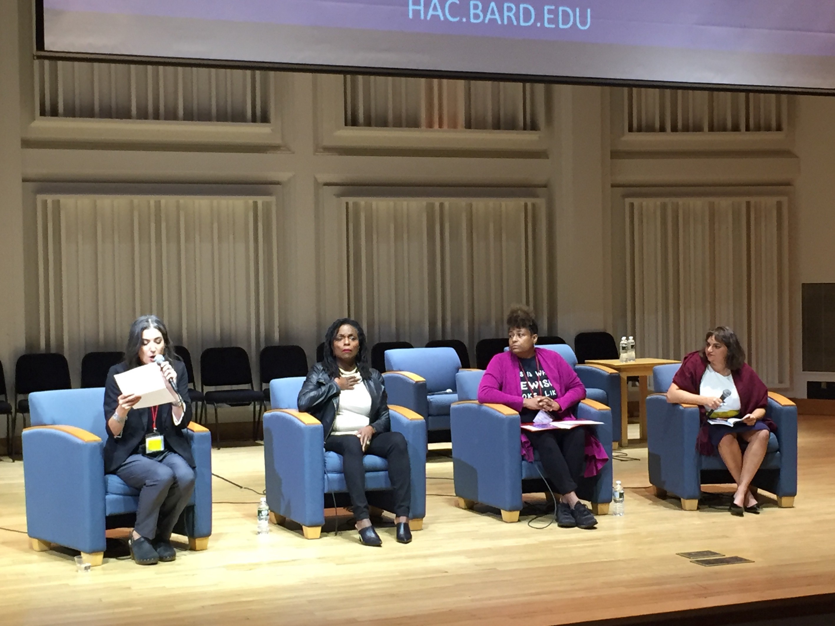 Batya Ungar-Sargon, Reverend Jacqui Lewis, Shahanna McKinney-Baldon, Amy SchillerAfter the 12th Annual Hannah Arendt Center Conference, this year on “Racism and Antisemitism,” the journalist Batya Ungar-Sargon posted an editorial in the Forward claiming she was protested at Bard College for being Jewish. She said she was prevented from continuing to speak, and that Bard College had no plan to deal with the protesters.To the Editor